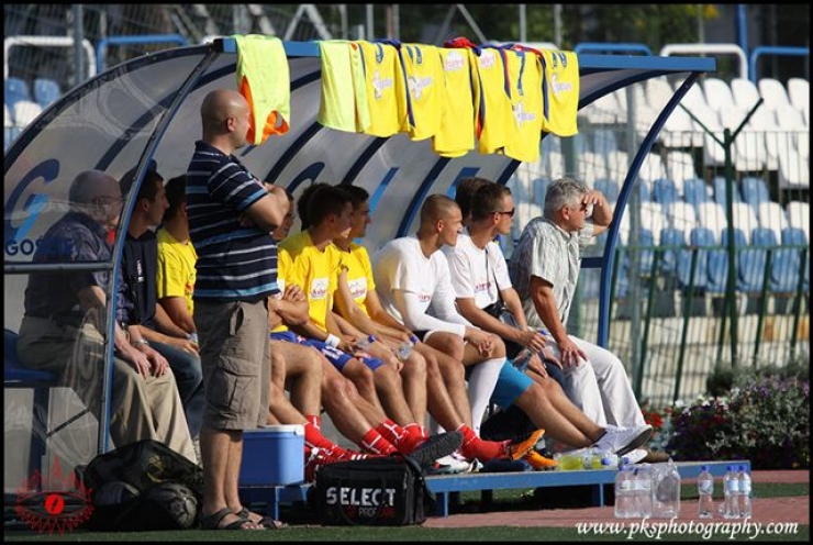 Następną dobrą akcją popisał się Czajka w 11', którego dośrodkowanie przejął Mężyk, ale piłka po jego uderzeniu poszybowała wysoko nad poprzeczką. W 21' wrzuconą piłkę w pole karne odegrał na 16 m Dziadzio lecz ponownie Mężyk uderzył za wysoko. W 24' to gospodarze stworzyli groźną sytuację pod naszą bramką. Rzut rożny egzekwował Guja i piłka podkręcona zmierzała w prawy górny róg naszej bramki, lecz dobrą interwencja popisał się Sotnicki wybijając piłkę na rzut rożny.